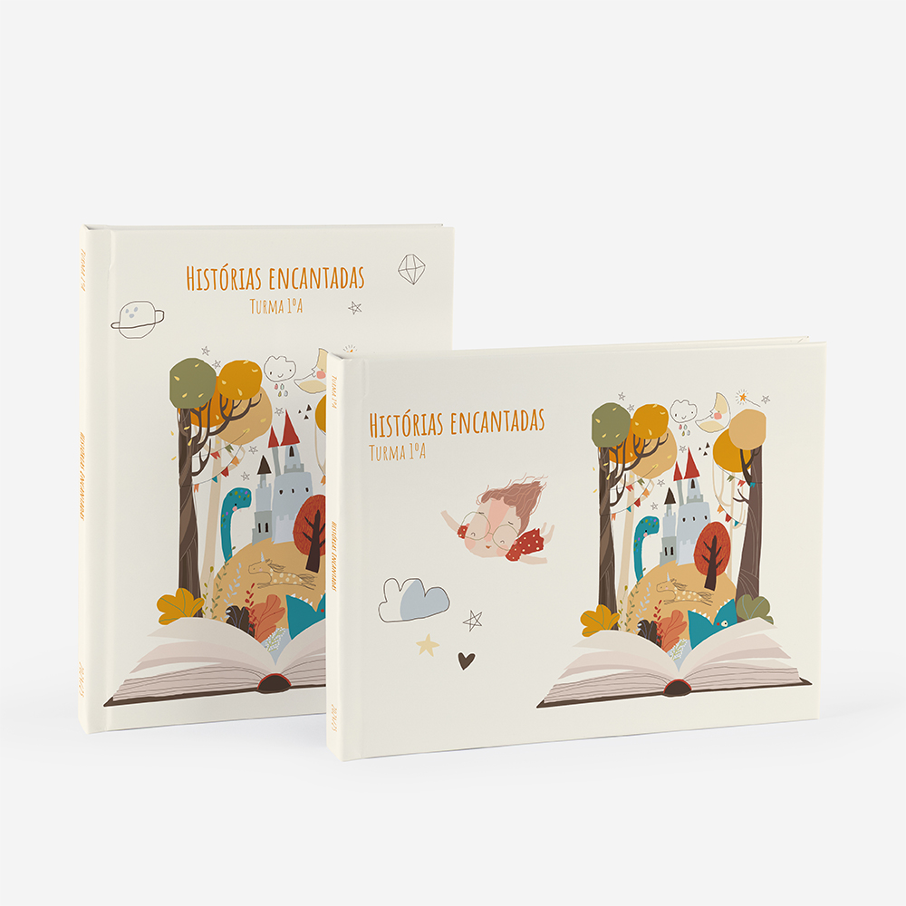 Podes personalizar a capa e contracapa do caderno de acordo com as tuas preferências. E podes optar por personalizar com fotografias, imagens, ilustrações ou até com o teu próprio nome.